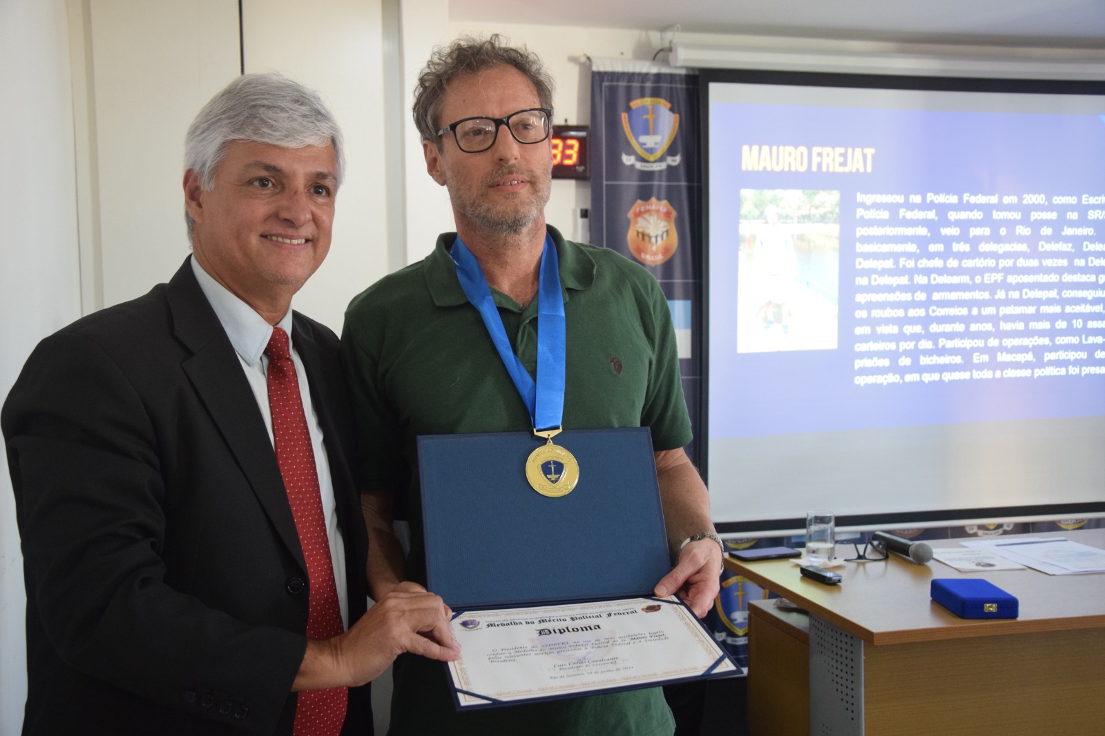 O APF aposentado, Agnaldo Arnaldo Batista, abordou a sua história na PF e enfatizou que nunca os aposentados tiveram tanta importância e reconhecimento quanto nesta Gestão do Sindicato. “Nós nunca tivemos reconhecimento algum, por mais tiros que trocamos, por mais apreensões que fizemos, por mais vidas que salvamos, não fomos reconhecidos pelo Departamento. Coube ao Sindicato nos homenagear. O Sindicato está dando aos antigos, à galera que deu o seu sangue, o devido reconhecimento, por isso, meus parabéns ao Sindicato”.
