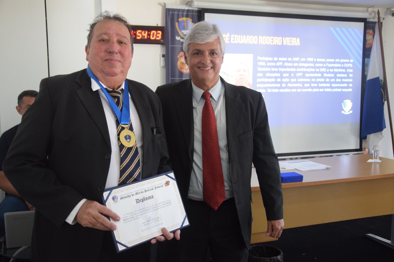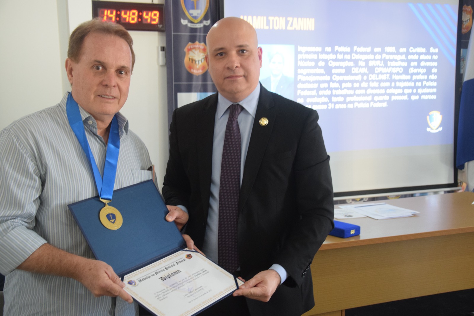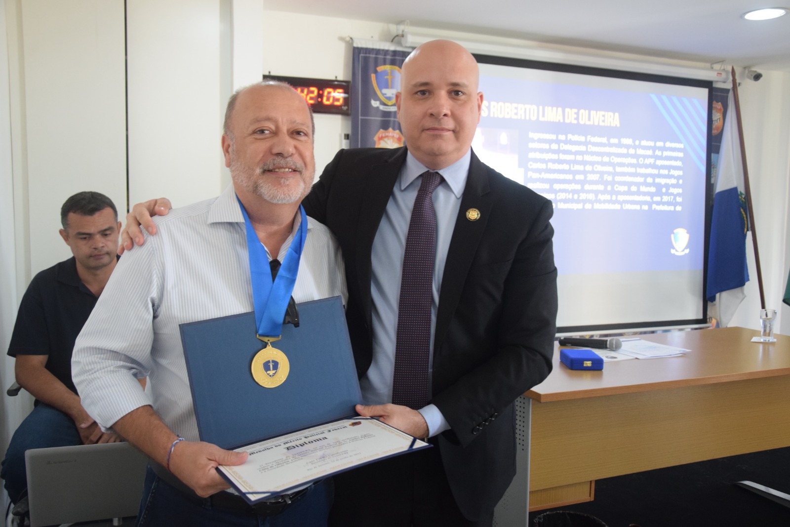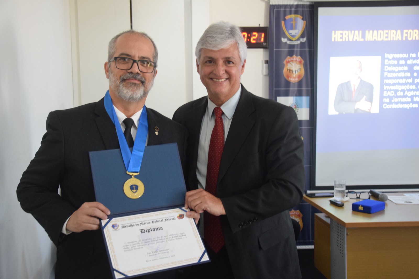 A AGE foi conduzida pelo presidente Luiz Carlos e pelo secretário-geral Iranilmo Lopes. Durante a Assembleia, também foram homenageados servidores aposentados e um falecido (in memoriam) com a “Medalha do Mérito Policial Federal”, comenda máxima da instituição, criada ainda na primeira gestão do presidente Luiz Carlos Cavalcante (2015-2018).