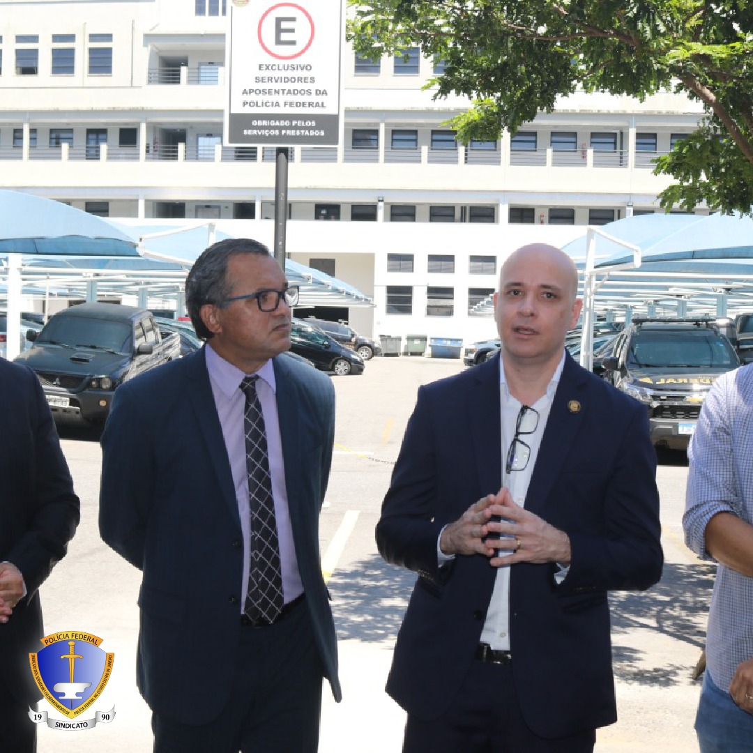 O Presidente do SSDPFRJ Luiz Carlos Cavalcante e o Presidente da Ansef/Rio Iranilmo Lopes compareceram, nesta sexta-feira (18/03), juntamente com representantes de outras entidades de servidores da PF, ao ato solene de destinação de duas vagas exclusivas para servidores aposentados da PF, localizadas em área de fácil acesso, no pátio interno da Superintendência da PF/RJ, em frente à Delegacia de Dia.