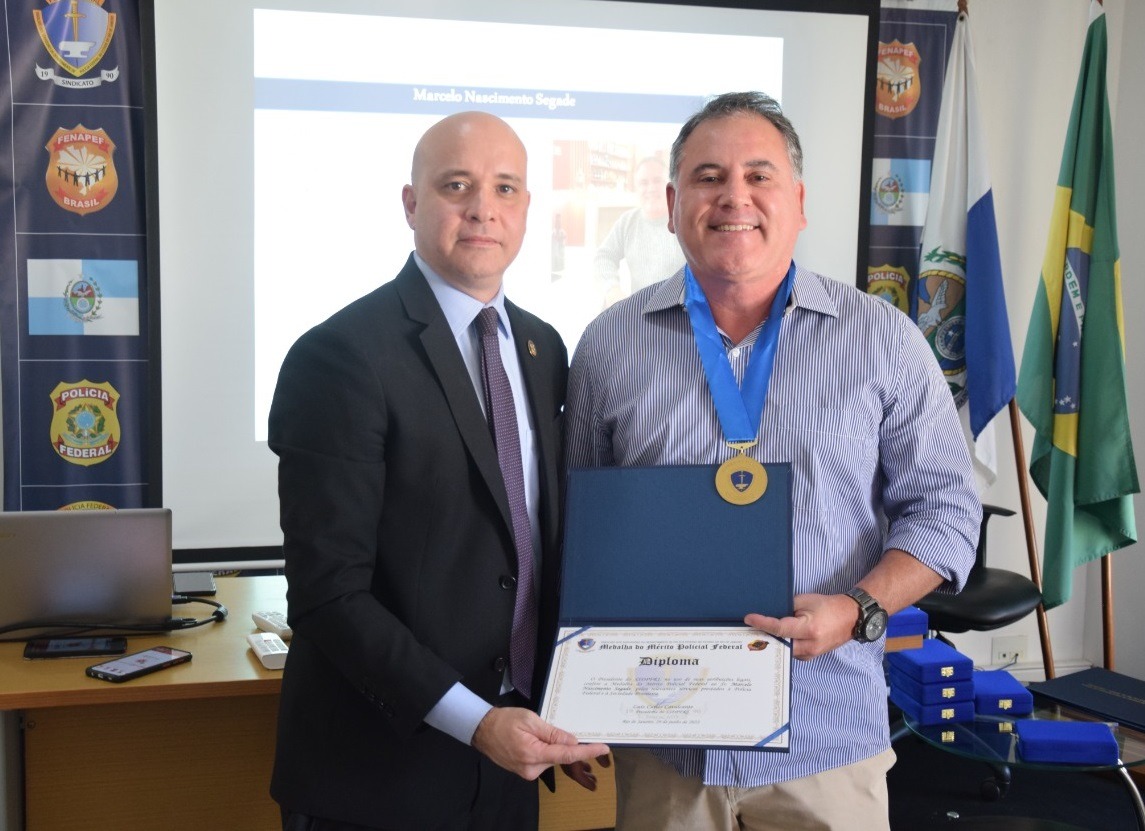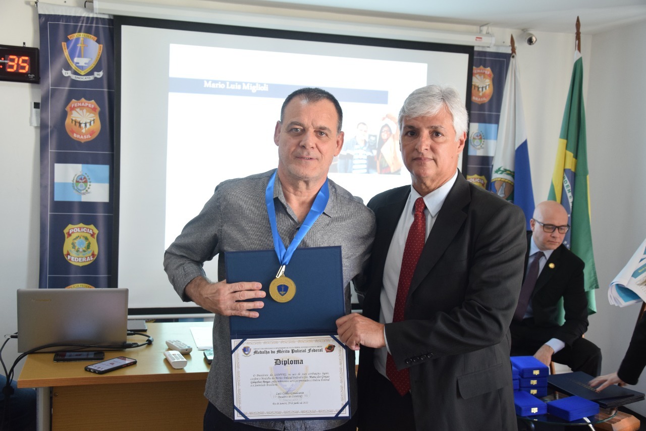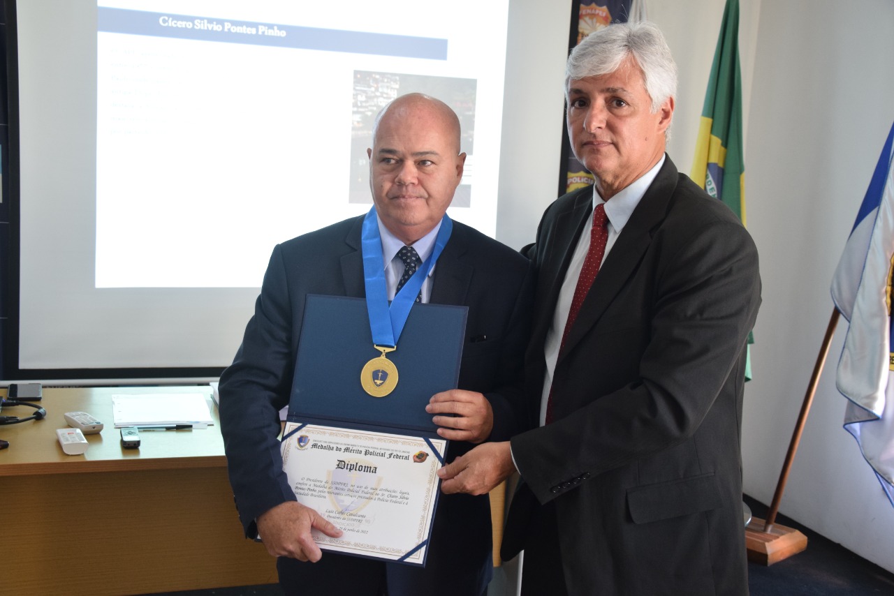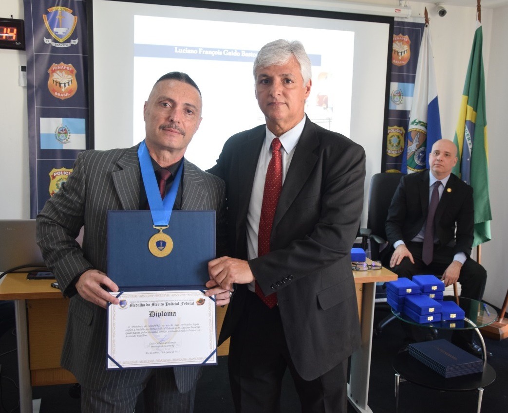 Entre alguns dos homenageados por relevantes serviços prestados à Polícia Federal e à sociedade estavam Cícero Silvio Pontes Pinho e Luciano François Gaido Bastos. “Luiz Carlos conduz o Sindicato com muita competência e seriedade. Só tenho a agradecer porque ser homenageado pelos pares é muito bom”, disse Silvinho, como é carinhosamente conhecido.
