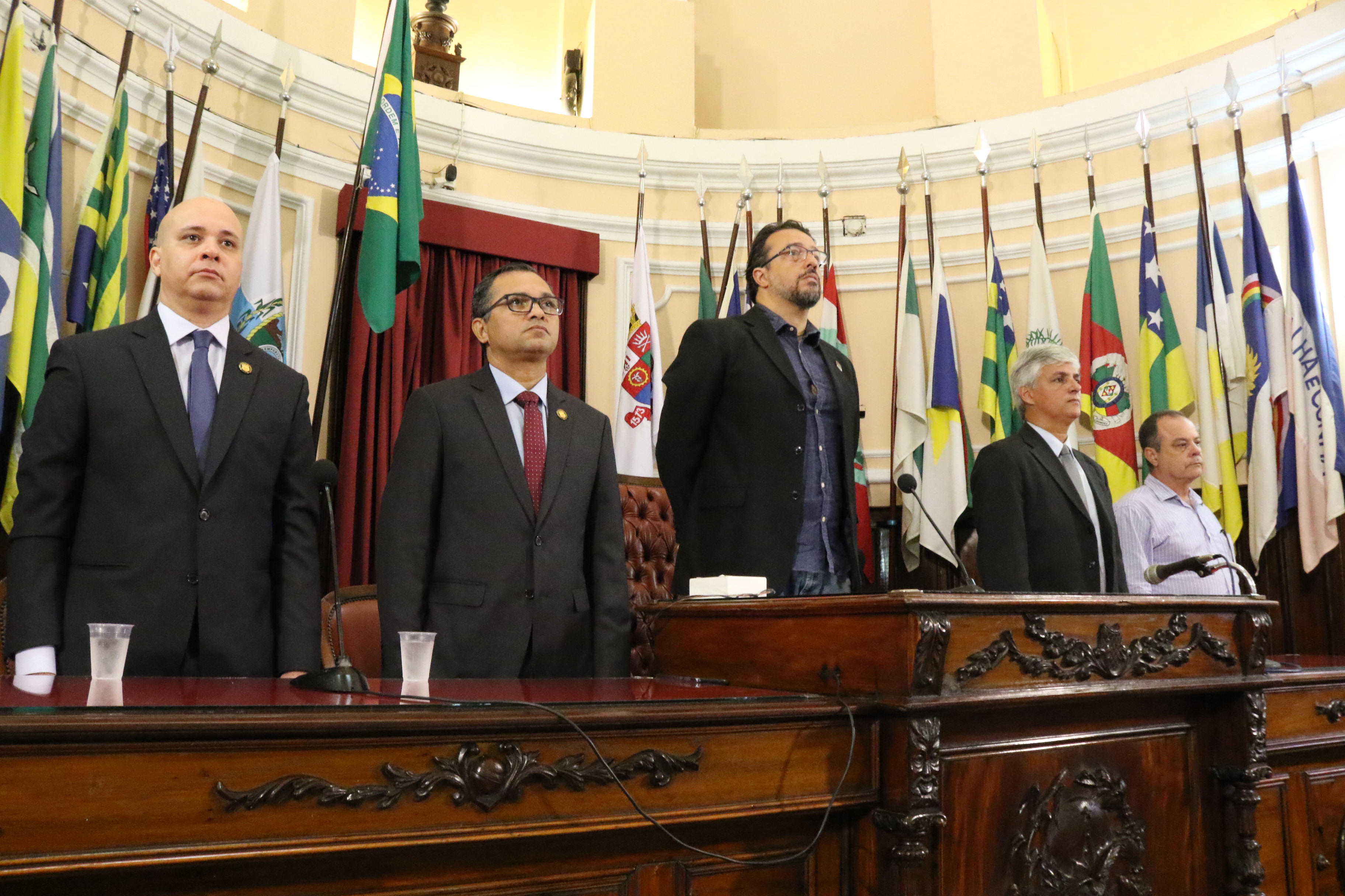 Compuseram a mesa o presidente do SSDPFRJ, Gladiston Silva, o vice-presidente do sindicato e diretor da Fenapef, Luiz Carlos Cavalcante, o presidente da Ansef-RJ e secretário-geral do SSDPFRJ, Iranilmo Lopes, e, representando os policiais civis, Cesar Augusto Bento Leite.