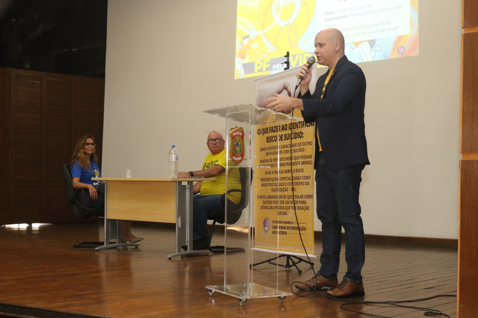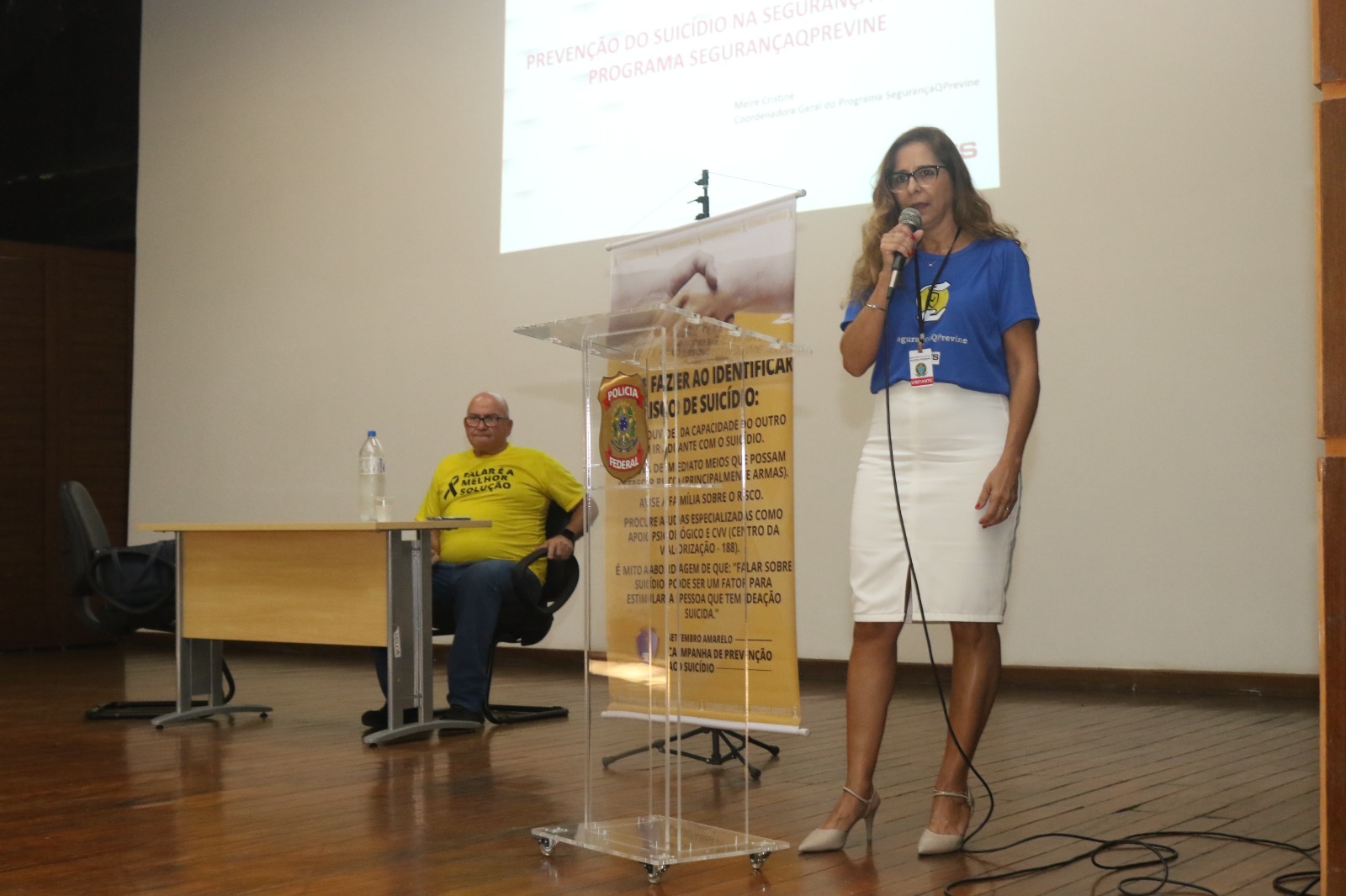 O SSDPFRJ realizou nesta terça-feira (12/09), com a colaboração da Administração da PF, a palestra: “Prevenção do suicídio na Segurança Pública: programa “segurançaQprevine”, no auditório da SR/RJ, com a palestrante Meire Cristina Ferreira de Souza, psicóloga e Comissária de Polícia da Secretaria de Estado de Polícia Civil do Rio de Janeiro e coordenadora de segurança pública e saúde do trabalhador do Instituto de Pesquisa, Prevenção e Estudos em Suicídio (IPPES).