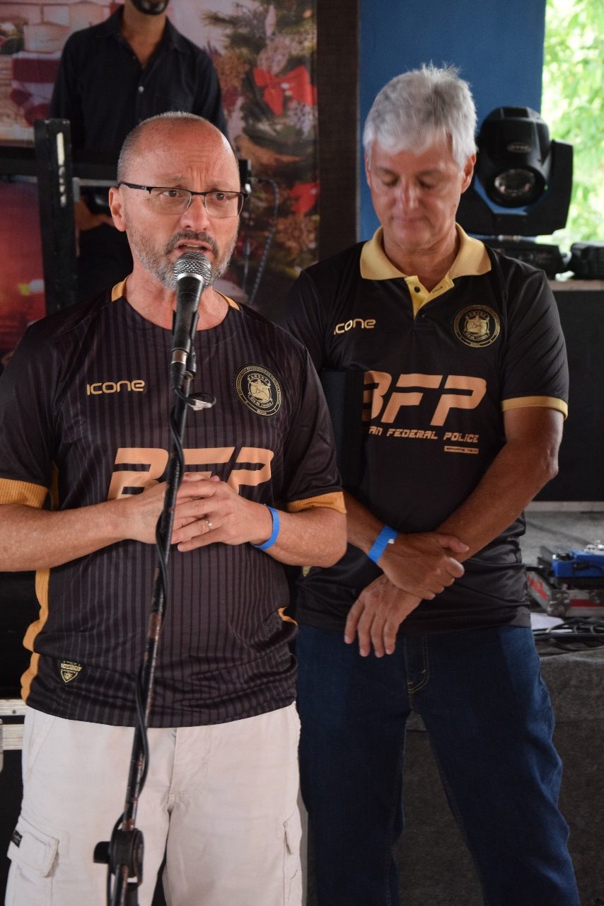 Prestigiando a festa pela primeira vez, o recém-eleito presidente da Fenapef e presidente do Sinpf-ES, PPF aposentado, Marcus Firme, agradeceu a receptividade dos cariocas e trouxe boas notícias direto de Brasília. “O Rio é muito importante para mim e já me considero carioca. Estamos trabalhando pelo nosso reajuste salarial. Não sabemos valores ainda, mas estamos trabalhando duro para acontecer. O plano de saúde também está sendo bem encaminhado”, garantiu Firme.